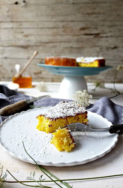 Algumas divagações depois, sei apenas que o encontrei há uns valentes anos numa revista "Saberes e Sabores" da Vaqueiro, e fiz durante algum tempo. Porque leva côco e mel, agradava imenso ao homem grande da casa.